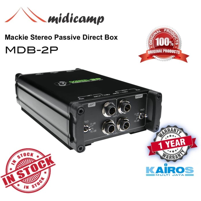 TheMackie MDB-2Pis a stereo passive direct box designed to connect two mono instruments or a single stereo instrument to microphone preamps for musicians and audio engineers in recording sessions, houses of worship, and live stage applications. It converts high-impedance, instrument-level signal via its 1/4″ TS unbalanced inputs to low-impedance, mic-level outputs via balanced XLR 3-pin jacks. Two 1/4″ TS thru jacks allow simultaneous connection to amplifiers or pedalboards.